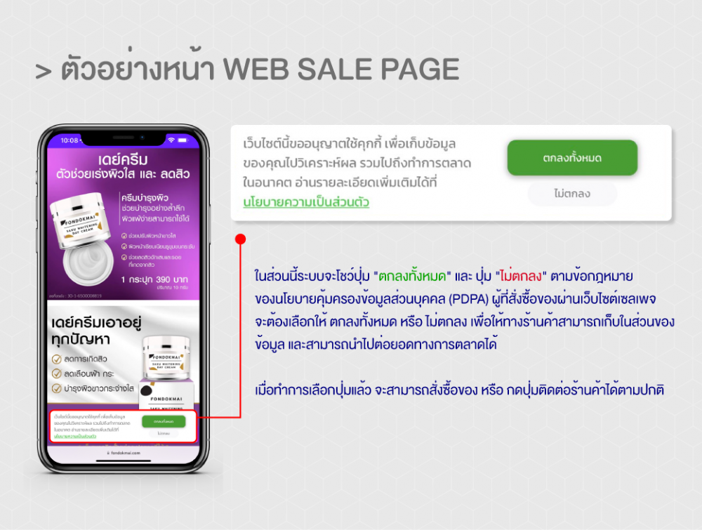 ตัวอย่างหน้า เซลเพจ (Sale Page) ที่มีการตั้งค่า PDPA เรียบร้อยแล้ว >> รับทำเซลเพจ.com/mainsalepage