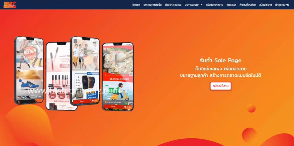 Fastcommerz เว็บไซต์ทำ Sale Page ฟรีที่ออกแบบโดยคนไทย ที่นำเสนอฟังก์ชันการขายของออนไลน์ในระบบ Ecommerz โดยเฉพาะ ตั้งแต่ออกแบบเว็บไซต์ด้วย Layout ปุ่มCTAs ต่างๆที่รองรับการนำเสนอรูปภาพโปรโมทสินค้าด้วย template ที่น่าดึงดูด สวยงาม พร้อมระบบหลังบ้านที่มีฟีลเจอร์ Dashboard ที่คอยรายงานข้อมูลที่ครบถ้วน และปิดการขายทุกอย่างภายในเว็บไซต์หน้าเดียวที่ตอบโจทย์สำหรับคนรุ่นใหม่ที่ไม่ต้องการอ่านข้อมูลหลายๆหน้า อีกทั้งระบบการยิงแอดในเว็บเบาเซอร์และโซเชียลมีเดียโดยใช้ตัวเซลเพจ สำเร็จรูปฟรี ๆ นี้ต่อยอดในการนำเสนอผ่านช่องทางต่าง ๆ โดยไม่ต้องค่าใช้จ่ายในการลงทุนออกแบบหน้าโปรโมทใหม่ ๆ เพียงแค่ลงทุนกับพวกเรา ประหยัดต้นทุนและสามารถนำรูปแบบเซลเพจของพวกเราไปต่อยอดการทำการตลาดออไลน์ในระยะยาวได้